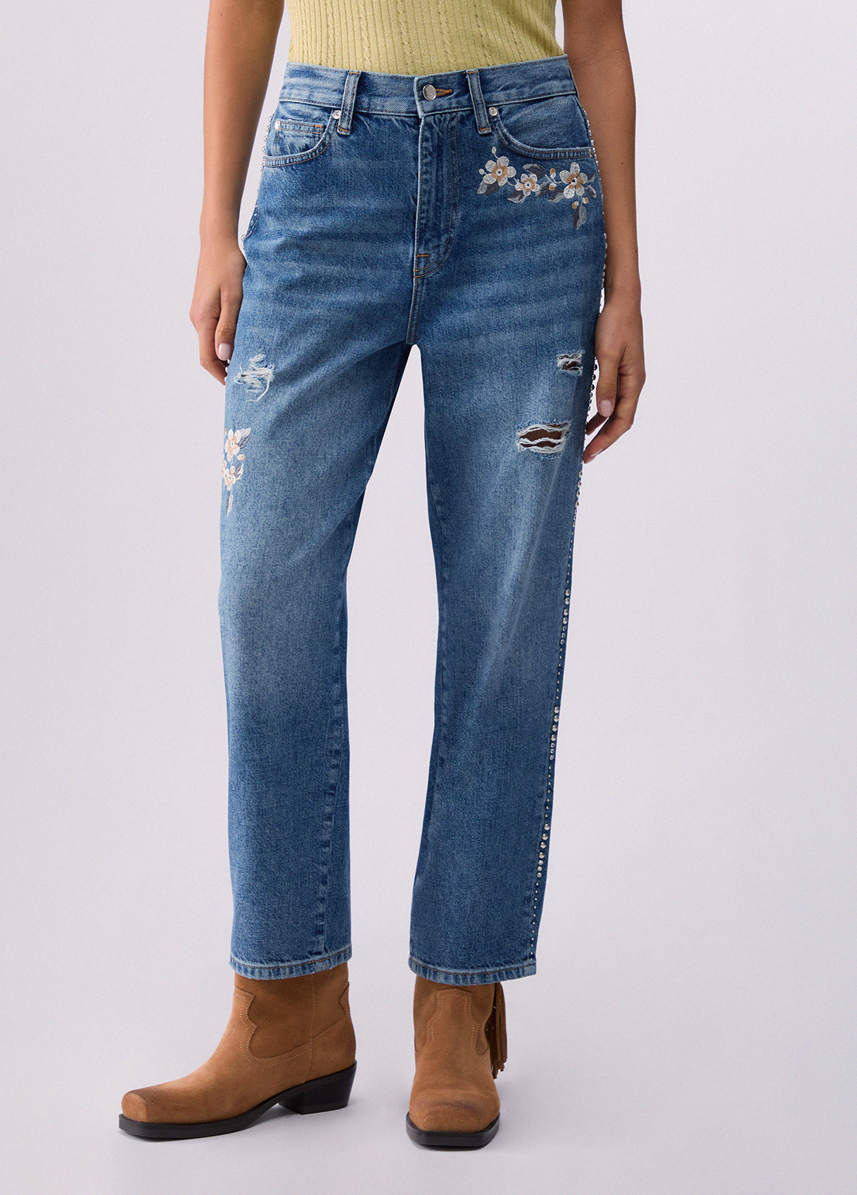 Liu Jo Jeans Straight Con Ricami Gioiello, Denim Blu, 32