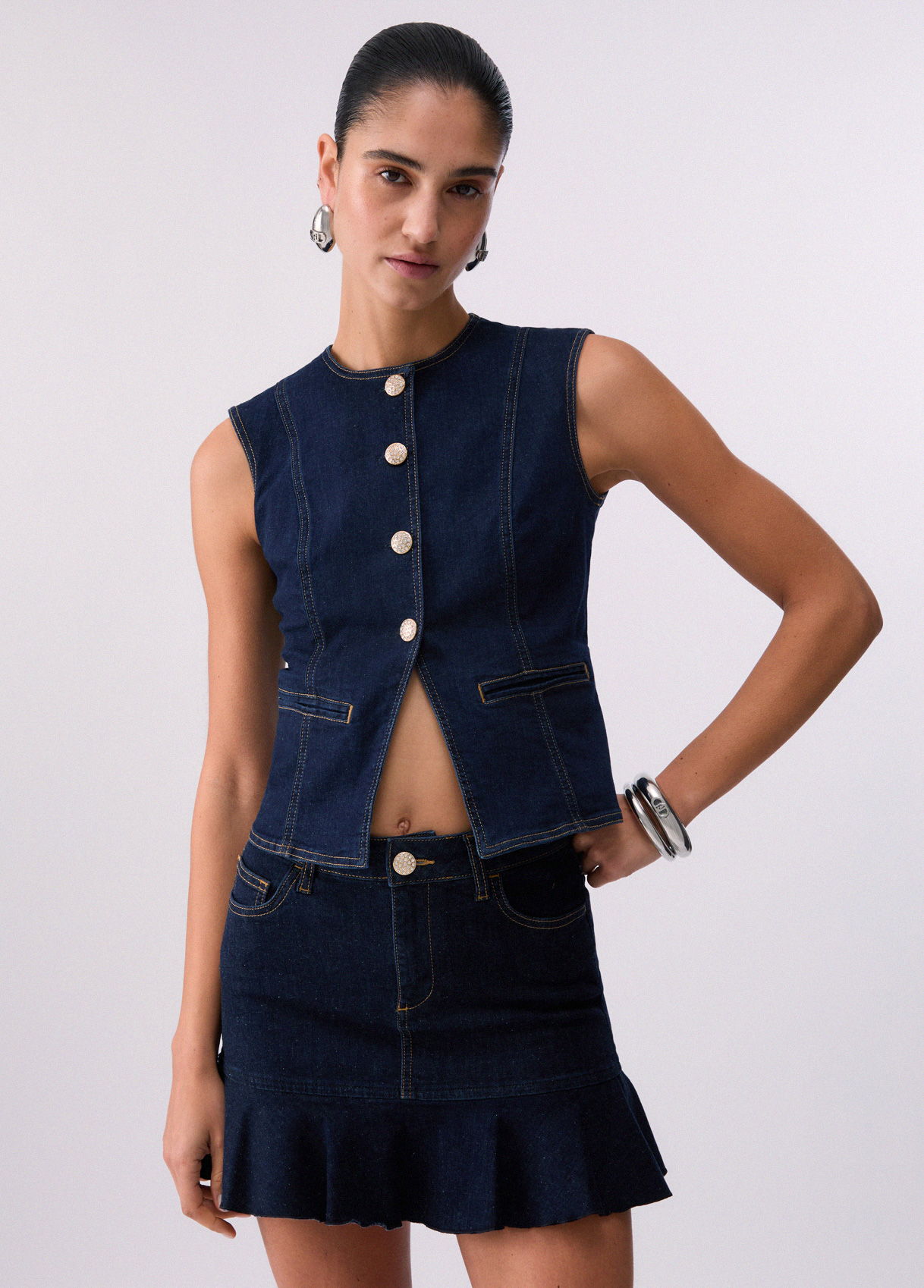 Liu Jo Gilet In Denim Slim Fit, Denim Scuro, 42