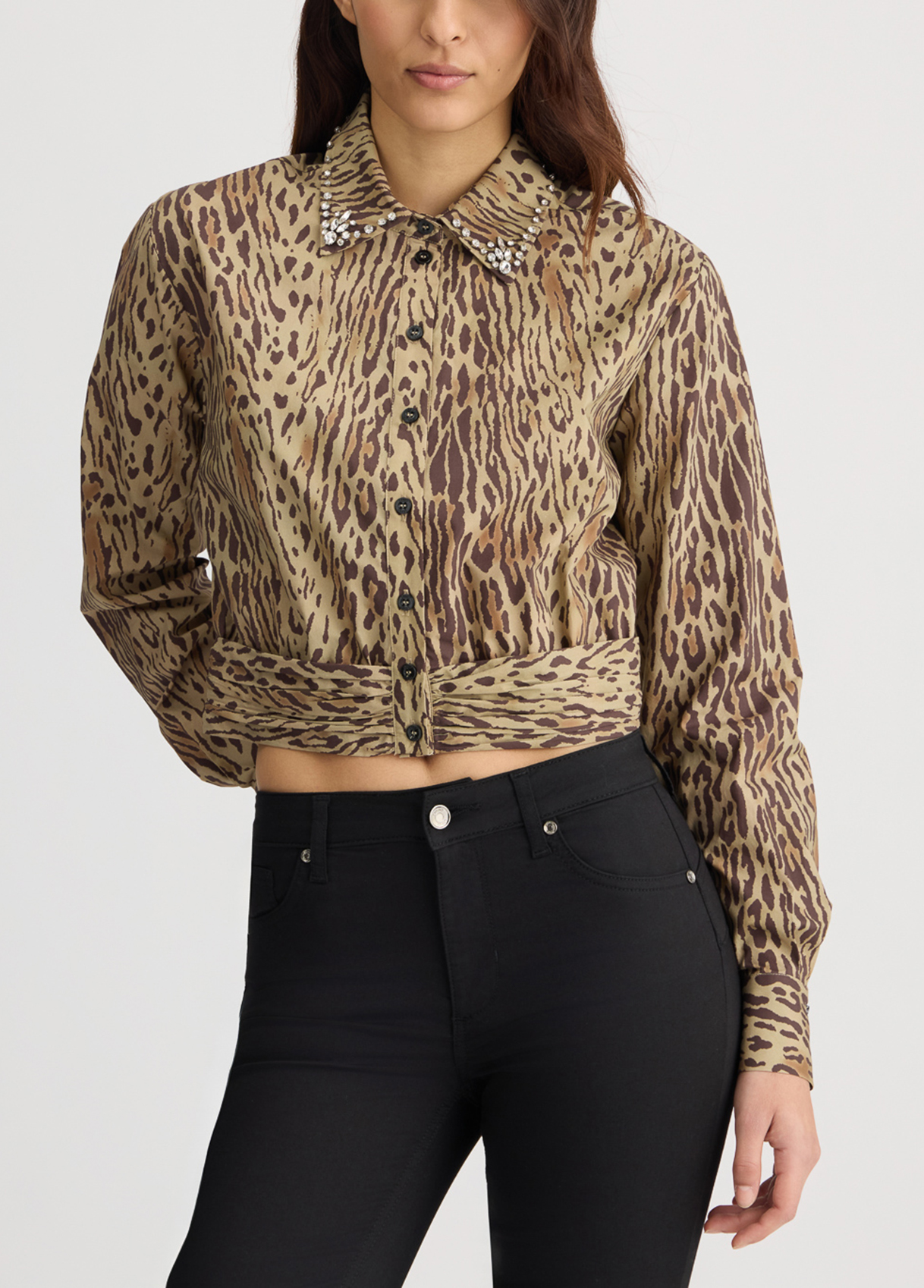 Liu Jo Camicia Animalier Con Ricami Gioiello, Leopardato, 44