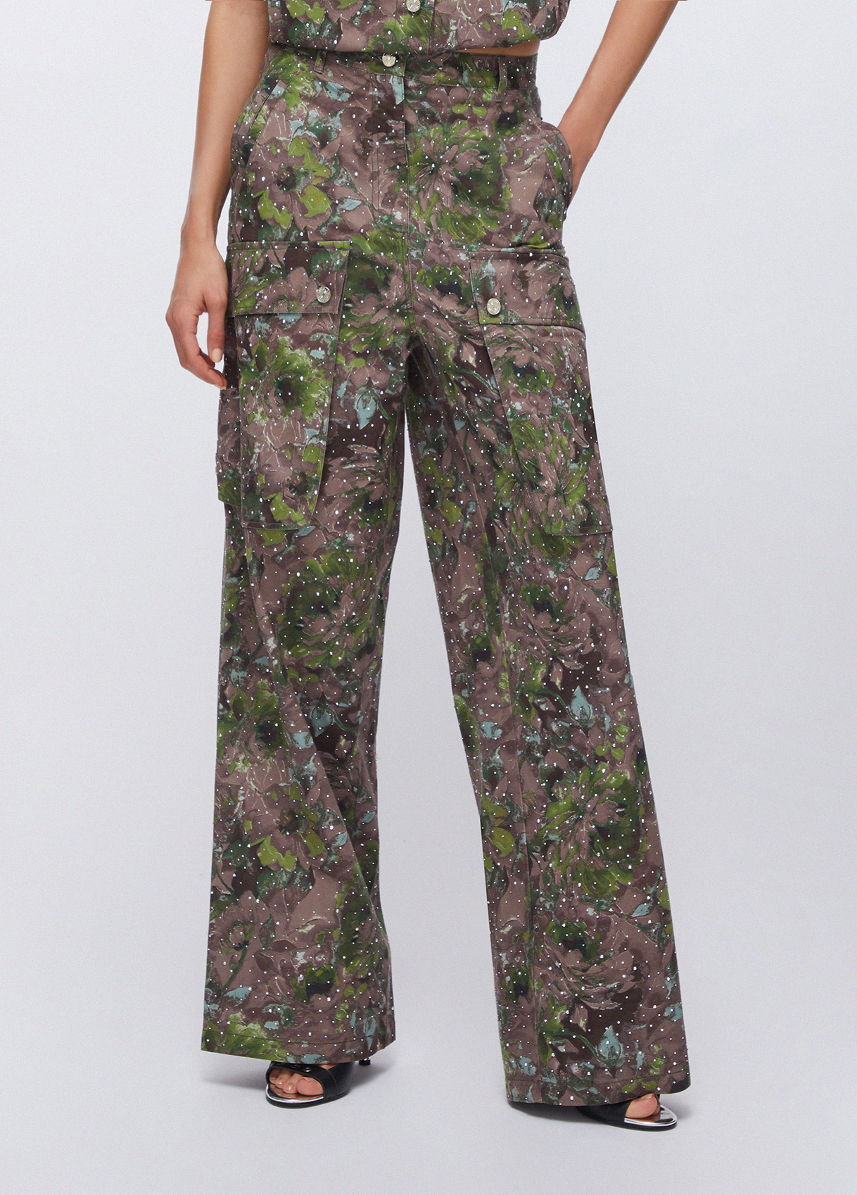 Liu Jo Pantaloni Cargo, Floreale Verde, 24