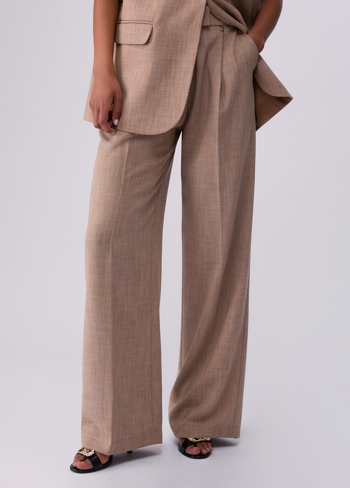 Liu Jo Pantaloni Palazzo In Tessuto Mélange, Biscotto, 48