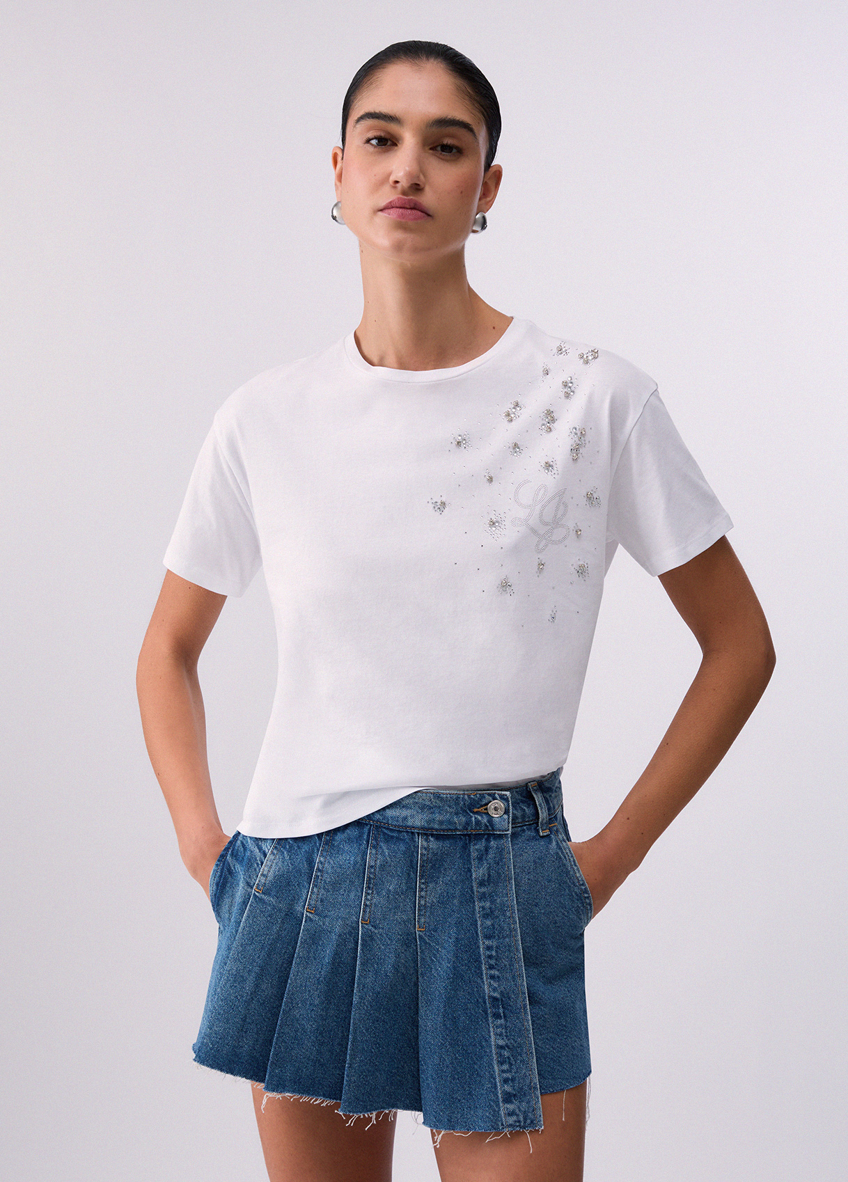 Liu Jo T-shirt Con Applicazioni Gioiello, Bianco Con Strass, S