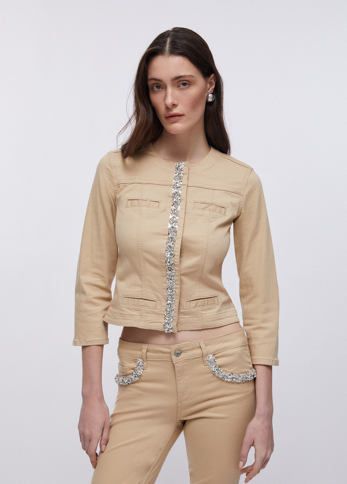 Liu Jo Giacca Con Applicazioni Gioiello, Beige, 48