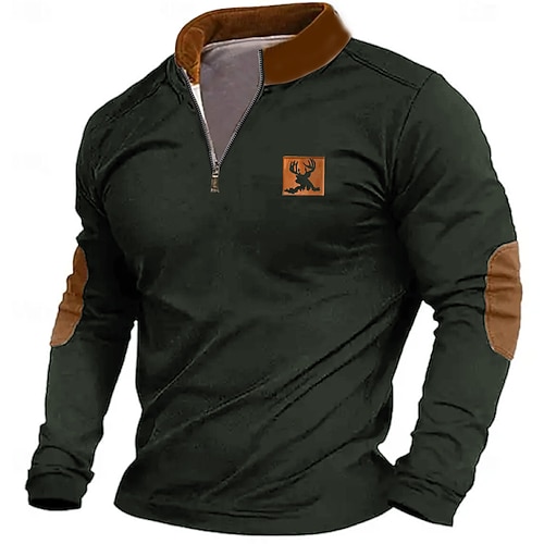Per uomo Cervo Felpa Felpa con zip Manica Lunga Felpa Zip a un quarto Quotidiano Essenziale Stampa Sport all'Aperto Viaggio Con zip Primavera Autunno