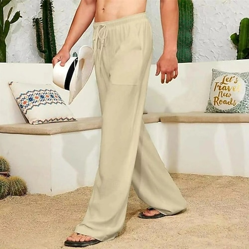 Per uomo Pantaloni di Lino Pantaloni Pantaloni Estivi Pantaloni da Spiaggia Elastico in vita Coulisse Gamba Dritta Semplice Comodità Traspirante Casuale Quotidiano Ferie Vacanza Moda Nero Bianco