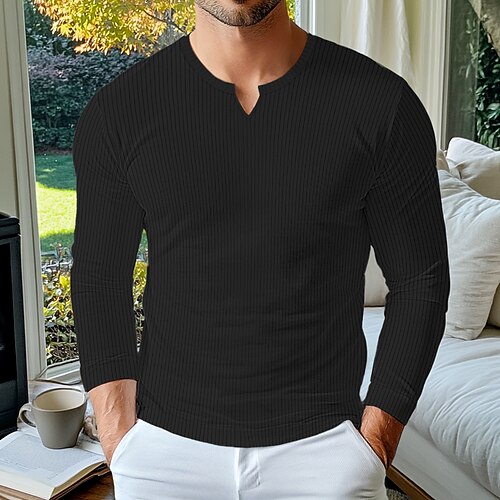 Per uomo Maglietta Canotta Muscolare Maglietta a Maglia a Coste Camicia a Maniche Lunghe Manica Lunga Scollo a V N / D Semplice Striscia di Fossa Essenziale Lavoro a maglia Casa Casual Quotidiano