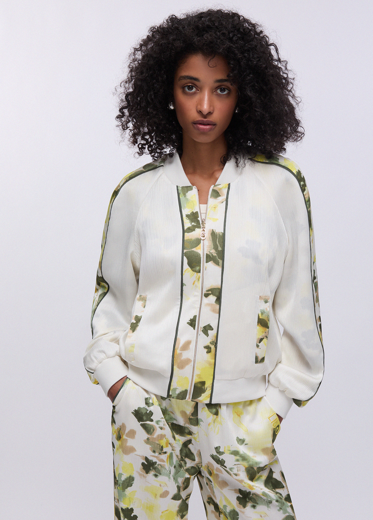 Liu Jo Giacca In Raso Stampato, Bianco/verde, M