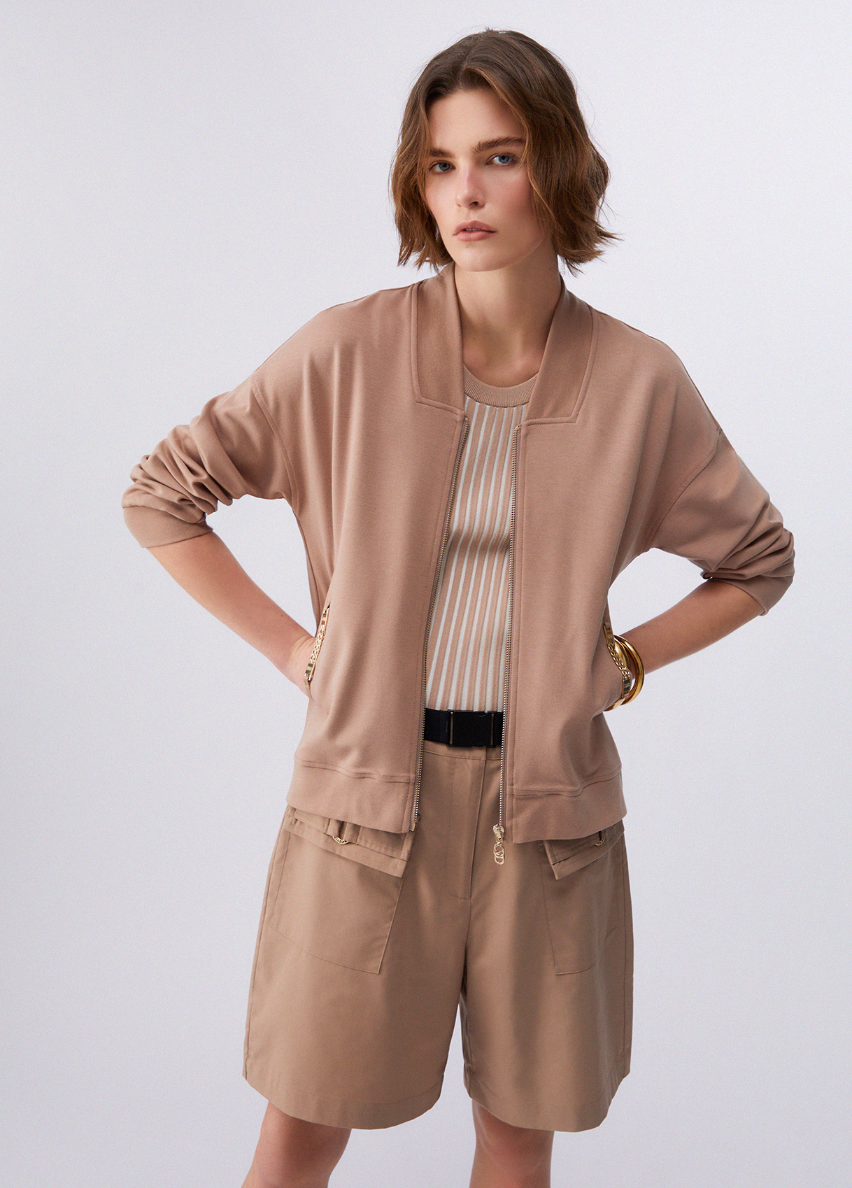Liu Jo Felpa Con Zip E Dettagli Chain, Beige, M
