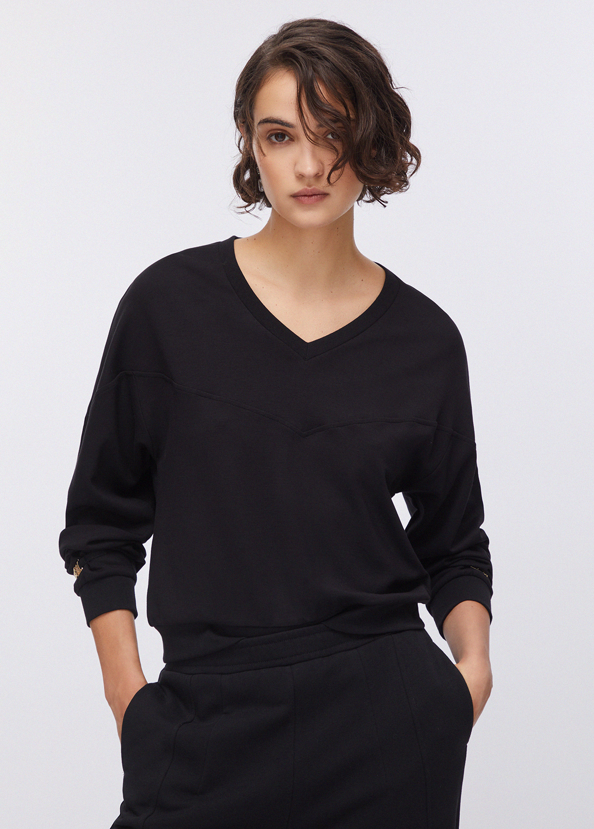 Liu Jo Maglia Con Scollo A V, Nero, S