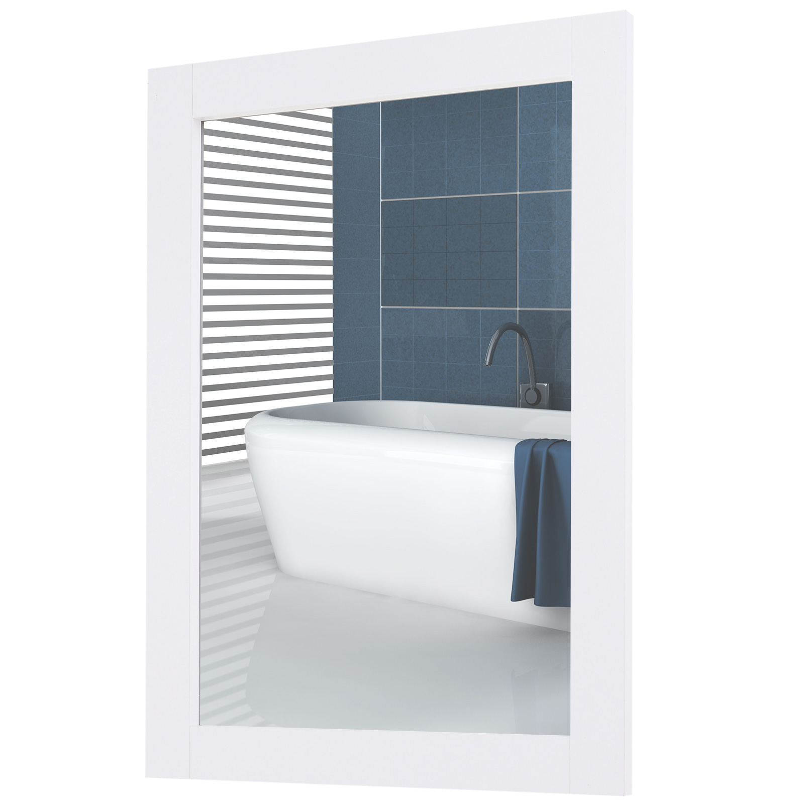 kleankin Specchio da Parete con Cornice in MDF e Vetro Argentato, Specchio Camera da Letto e Bagno, 52x1.9x72cm Bianco