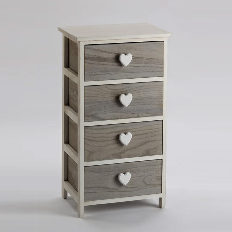 Cassettiera 4 Cassetti Con Cuore Colore White Washed In Legno Di Paulownia