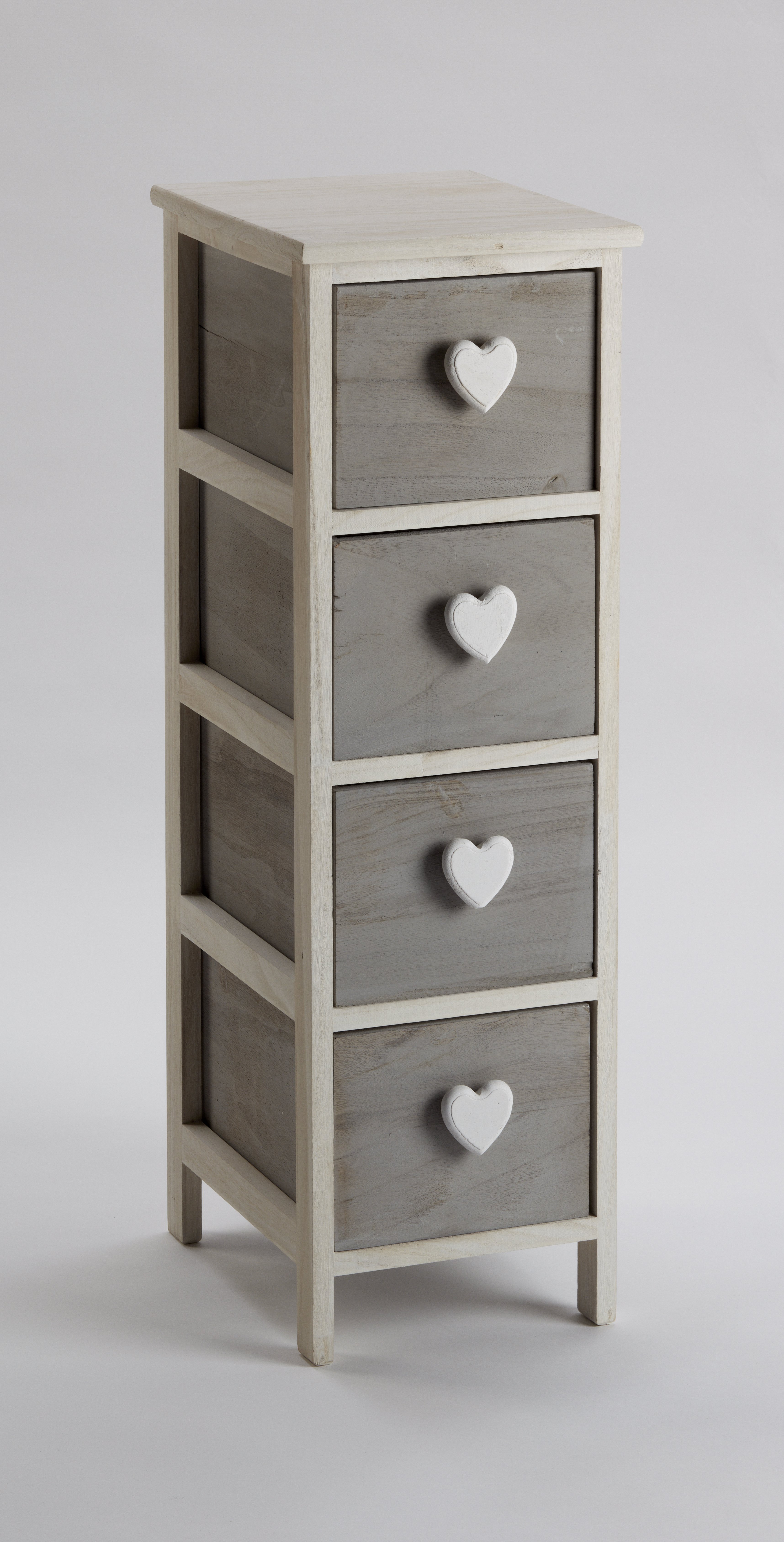 Cassettiera Bianca/Grigia Con Pomoli A Cuore, Prodotto In Legno Di Paulownia