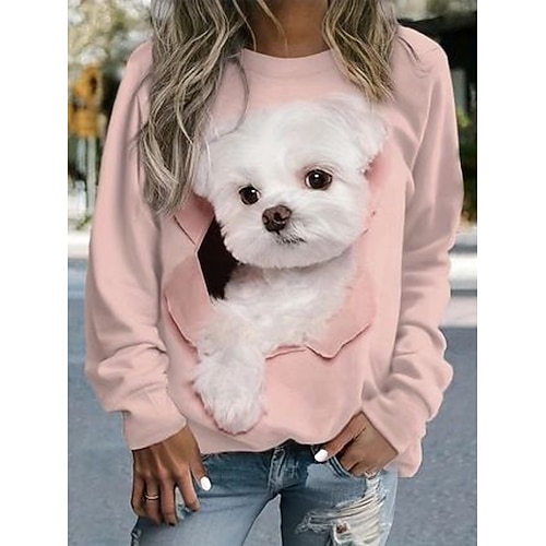 Per donna Felpa Pullover Felpe con cappuccio Stampato Grafico Animale Moda Casual Manica Lunga Girocollo Top Regolari Streetwear Abbigliamento Quotidiano Bianco Rosa Marrone Primavera Autunno Inverno