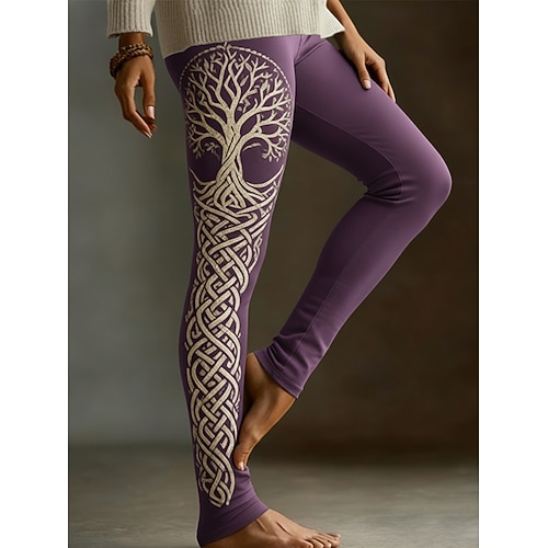 Per donna Vichingo Leggings Leggings comodi Vacanza Vintage Stile Etnico Lunghezza intera Vita Alta Albero Stampa Confortevole Elasticizzato Casuale Quotidiano Vacanza Viola Verde Primavera Autunno