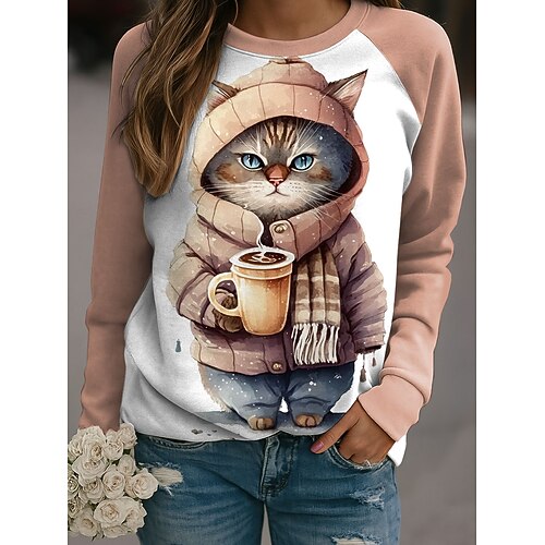 Per donna Pullover Grafico Gatto Casual Manica Lunga Girocollo Top Regolari Casuale Rosa chiaro Rosa scuro Arancione Grigio Autunno Inverno