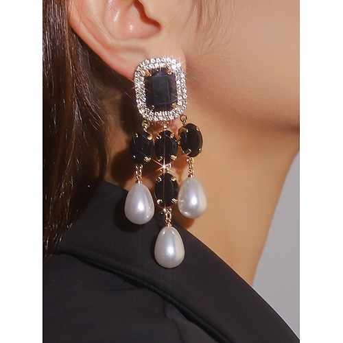 orecchini pendenti da donna con cristalli e perle - orecchini pendenti glamour con strass per feste, matrimoni o eventi serali