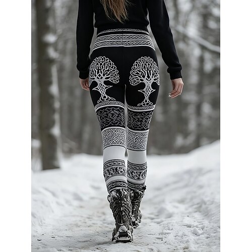 Per donna Leggings Vacanza Vintage Stile Etnico Lunghezza intera Vita Alta Grafico Astratto Stampa 3D Asciugatura Rapida Traspirabilità Morbido Elasticizzato Quotidiano All'aperto Streetwear Bianco