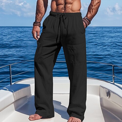 Per uomo Pantaloni Cargo Pantaloni di Lino Pantaloni Pantaloni Estivi Pantaloni Larghi Tasca Elastico in vita Coulisse Semplice Comodità Traspirante Lunghezza intera Casuale Quotidiano Ferie Vacanza