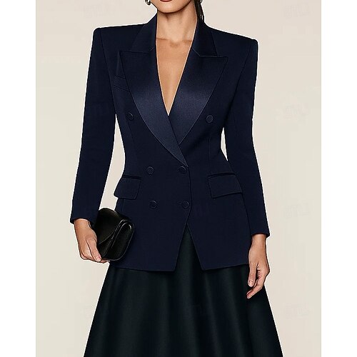 Per donna Blazer Giacca Sportiva Formale Ospite di nozze Raso Elegante Manica Lunga Risvolto a punta Doppiopetto