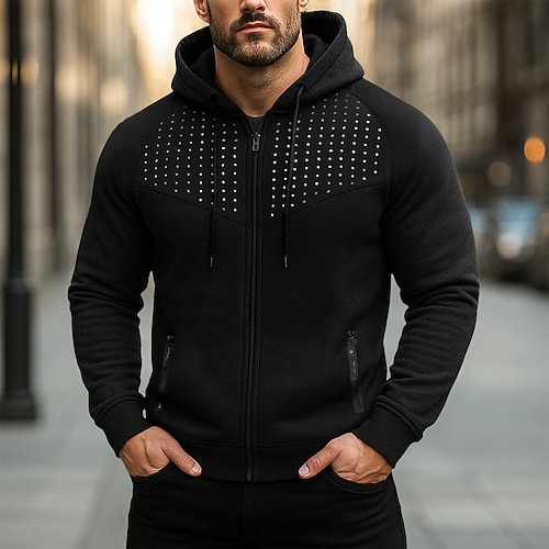 Per uomo Felpa con cappuccio Felpa con cappuccio a zip intera Nero Rosso Blu Grigio Con Cappuccio Semplice Patchwork Sport Outdoor Casuale Quotidiano Streetwear Cool Abbigliamento Sportivo