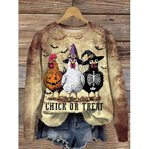 Felpa Pullover Donna Grafica Pipistrello Animale Moda Casual Manica Lunga Collo A Girotondo Regolare Tops Strada Dailywear Stampa Casual Gialla Arancio Marrone Autunno Inverno