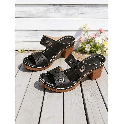 sandali da donna con tacco a blocco, doppio cinturino traforato, fibbie regolabili, stabili e comode, scarpe casual-chic per resort all'aperto