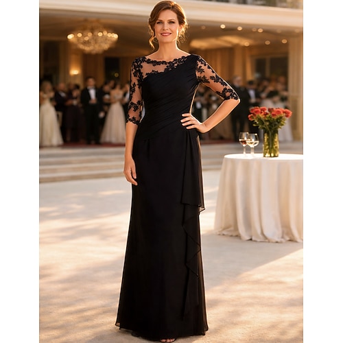 Tubino Colonna Lunghezza al pavimento Abito da invitata a nozze Abito Formale Abito da sera Abito da cerimonia per signora Mezza Manica Scollo a Barca Taglie Forti Ospite di nozze Chiffon Pizzo con