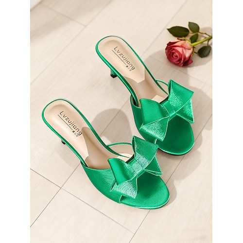 pantofole da donna in raso rosa con fiocco oversize e punta aperta: eleganti pantofole con tacco per San Valentino, appuntamenti romantici e occasioni speciali