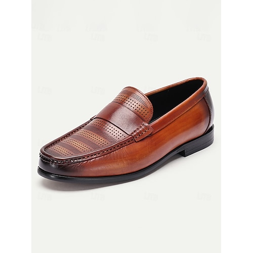 mocassini da uomo in pelle marrone, stile classico slip-on con dettagli testurizzati, design elegante e formale per matrimoni, eventi aziendali e cerimonie speciali