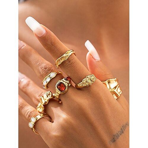 set multi-anello da donna in argento con pietre preziose colorate, anelli importanti testurizzati per feste e occasioni speciali