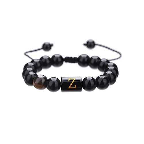 Bracciale regolabile da uomo in pietra naturale con design a lettere dell'alfabeto, personalizzabile con 26 lettere, perfetto come regalo, per occasioni casual e speciali