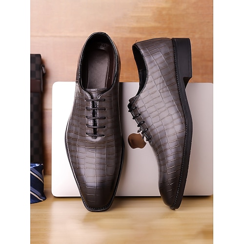 Scarpe Oxford da uomo in finta pelle di coccodrillo marrone scuro – eleganti calzature stringate per riunioni di lavoro e occasioni speciali