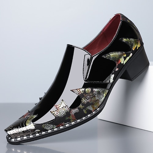 scarpe da sposa artistiche in similpelle da uomo – stampa coccodrillo nera e multicolore con dettagli unici, scarpe audaci e creative per matrimoni ed eventi speciali