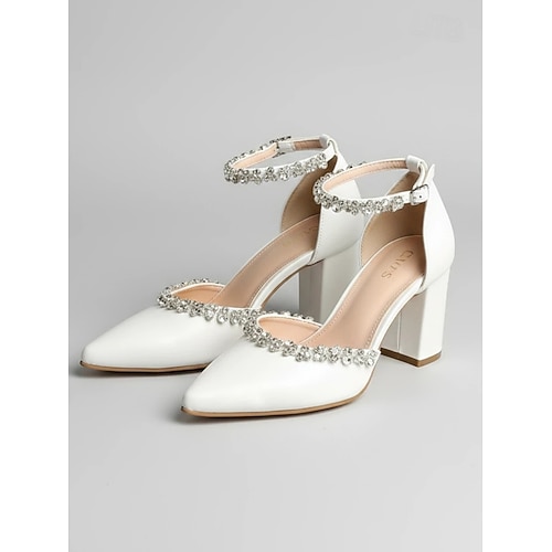 scarpe da sposa con tacco a blocco bianco da donna – punta affilata con cinturini alla caviglia decorati con strass, eleganti calzature da sposa per occasioni speciali