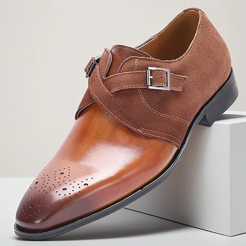 scarpe brogue da uomo in similpelle marrone, design classico a punta, calzature formali e casual per ufficio e occasioni speciali