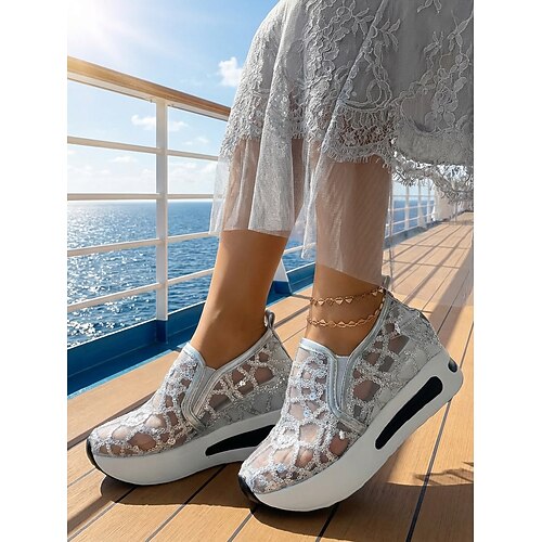 sneakers slip-on da donna in rete con paillettes dorate e suola con plateau - scarpe casual eleganti per feste e occasioni speciali