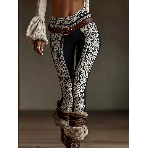 Leggings Boho Viking da donna Vintage Stile Etnico Full Length Alta Vita Grafica Astratta Stampa 3D Asciugatura Rapida Traspirabilità Morbidi Elasticizzati Formali Outdoor Vacanza Marrone Chiaro Neri
