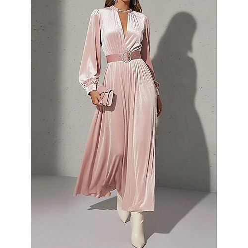 Per donna Abito Midi Abito in Velluto Abito Vintage Vestito da Festa Abito da Cocktail Elegante Moda Moderno Festa serale Feste Occasione speciale Vestibilità regolare Semplice Manica Lunga Scollo a V