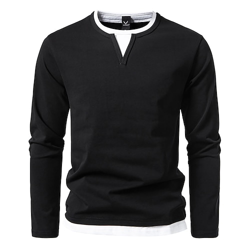Per uomo Maglietta Manica Lunga Girocollo Tutte le stagioni Tinta unica Maglieria Quotidiano Casual Finto due pezzi All'aperto Vacanza Casa Nero Marrone Verde Maglietta Top per Uomo