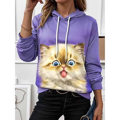 Kayomi Harai Felpa con cappuccio da donna oversize maniche lunghe casual grafica animale gatto vintage moda western top abbigliamento da strada stampa festa giallo blu viola autunno inverno