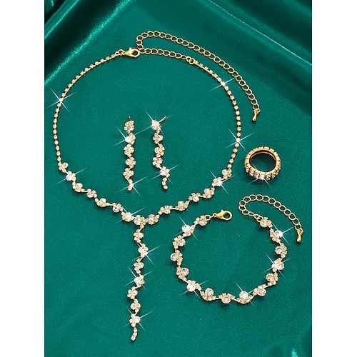 set di gioielli con strass dorati: elegante set di collana, bracciale e anello per donna, perfetto per eventi formali, matrimoni e occasioni speciali